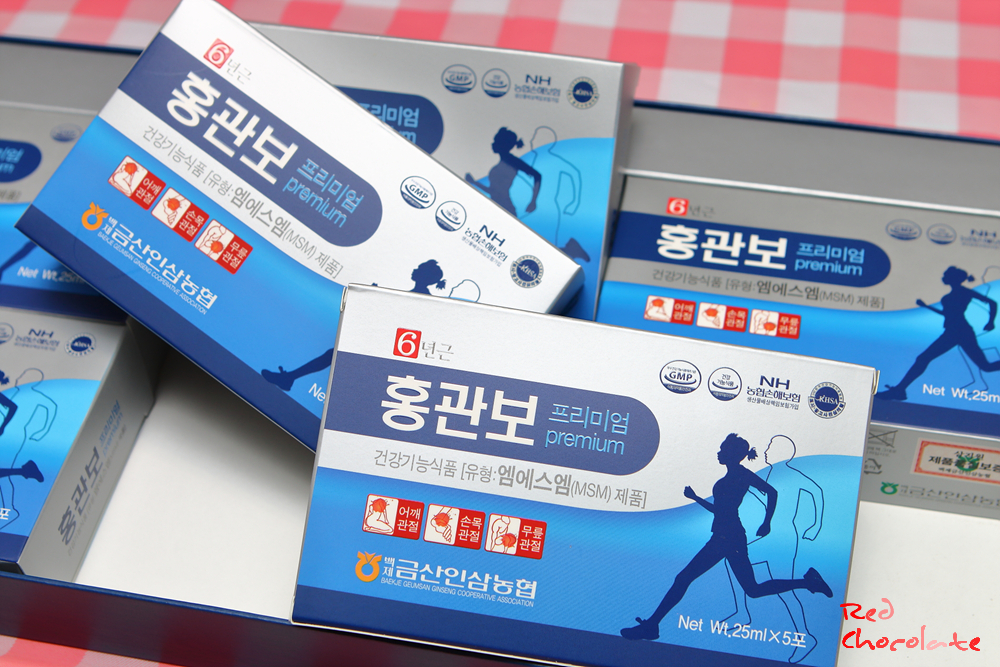 홍관보 프리미엄은 그 좋은 홍삼과 더불어 기능성 원료인 MSM을 더해 관절과 연골 건강에 도움을 주는 건강기능식품으로 거듭났다.