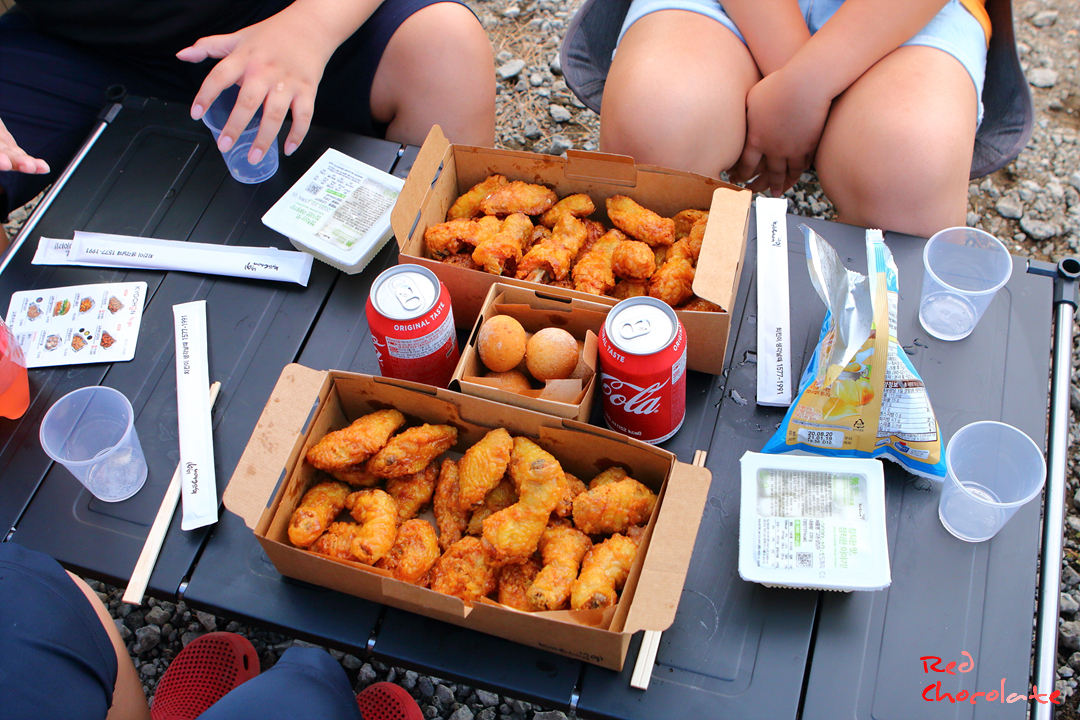 캠핑장에서 먹는 치킨은 정말 최고다.