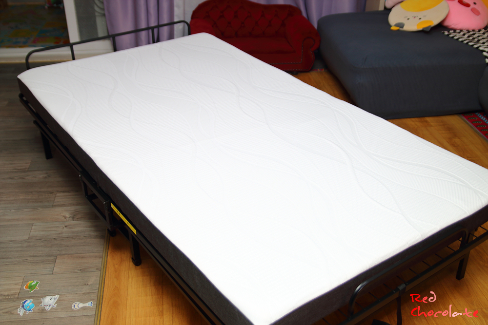 접이식 침대지만 흔들림 최소화하고 편안한 메모리폼 매트리스 사용하니 영락없는 가정용 침대다.