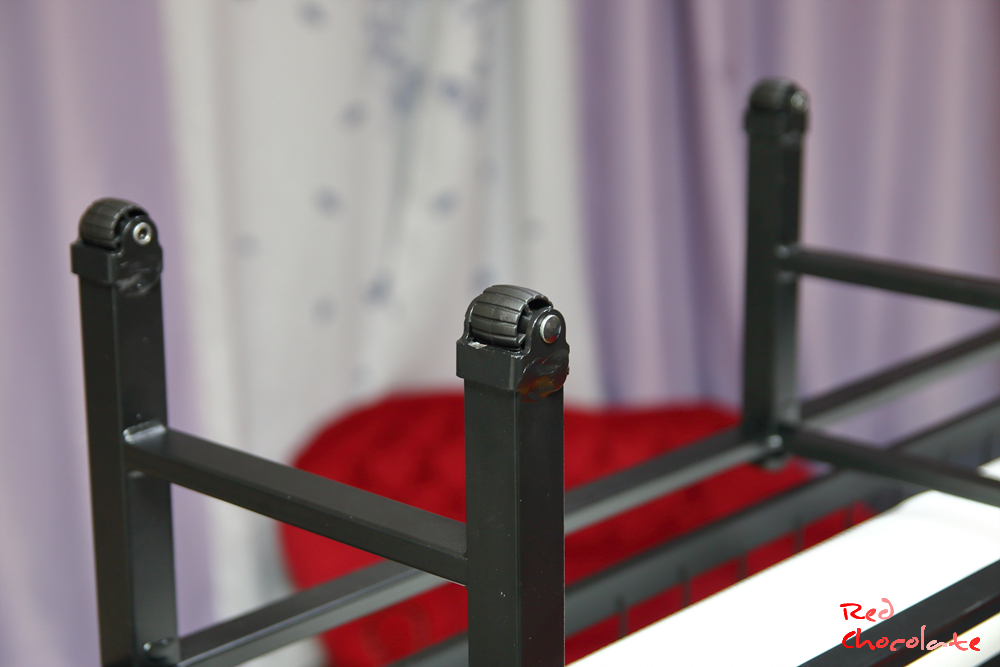 사용 전 조립은 바퀴가 달린 침대의 중앙 프레임 다리를 연결해 주는 것이다.