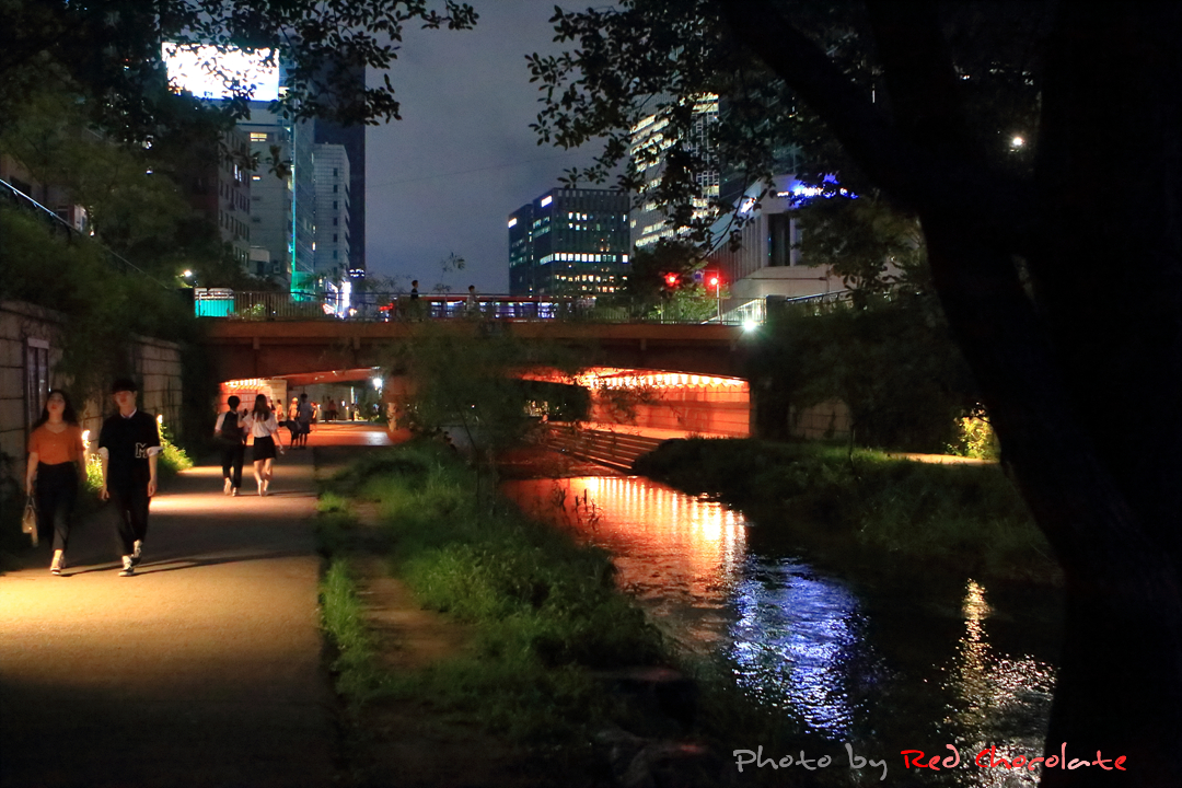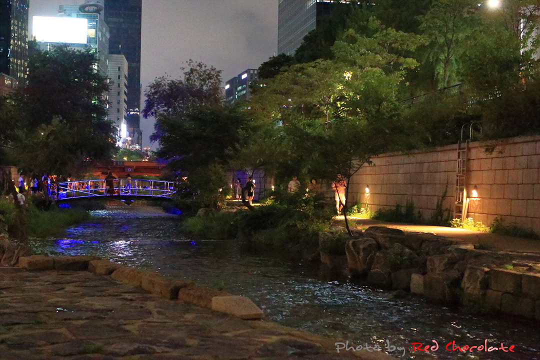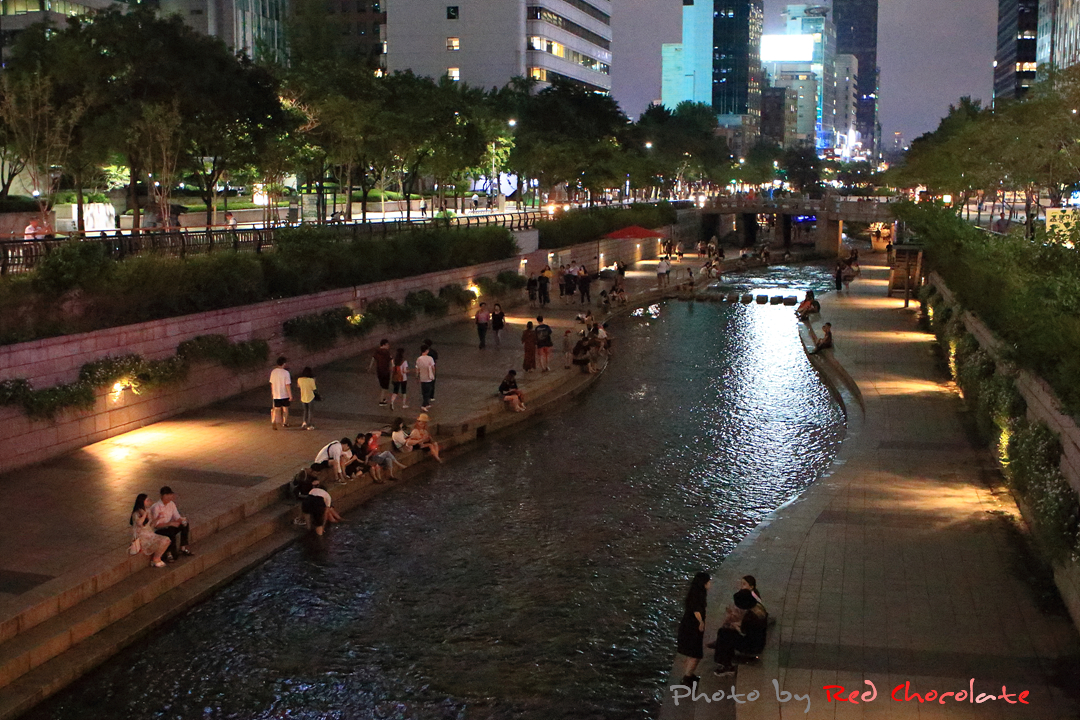 그 입구에 광장이 있고~~ 광장보다는 청계천에 내려가 발 담그는 사람들이 더 많다~~~