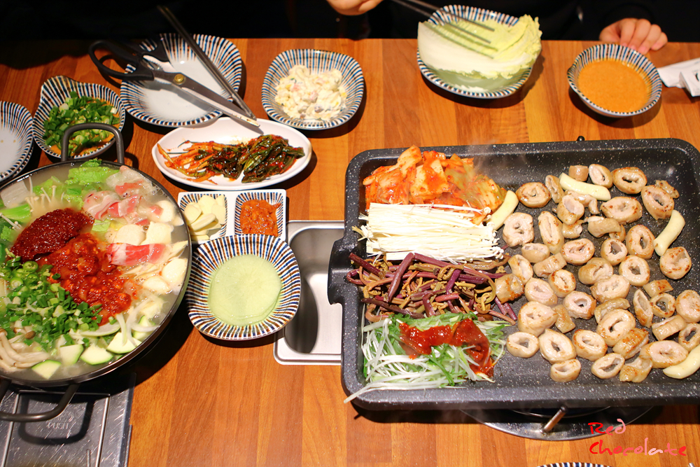 요즘 고기 맛집의 트렌드인가... 불판에 한가득 김치와 야채들이 올려진다.
