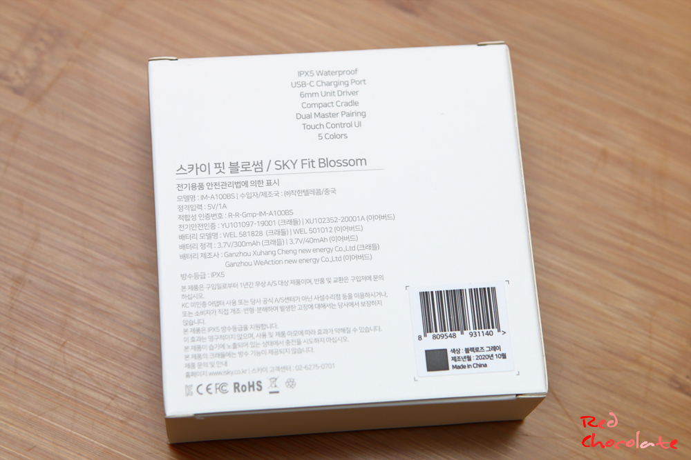 더 앙증맞은 크기의 SKY 로고가 있는 스카이 핏 블로썸 이어버드다.
