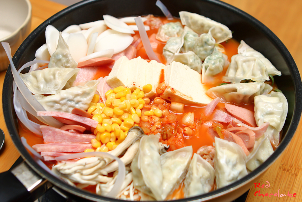 캠핑 갈 때도 그랬지만 집에서도 4~5인분의 모둠 부대찌개를 구매하였다.