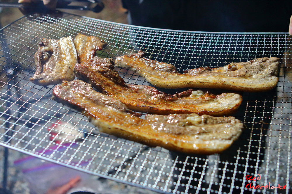 캠핑장에서 먹는 생고기도 괜찮은 날이었네.