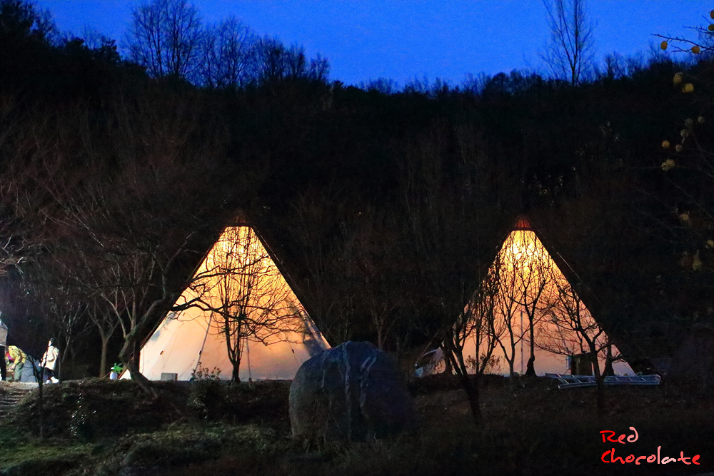 늠름하게 서있는 두 동의 대형 티피 텐트를 향해 장 봐온 음식 들고 캠우님들 만나러 가자.