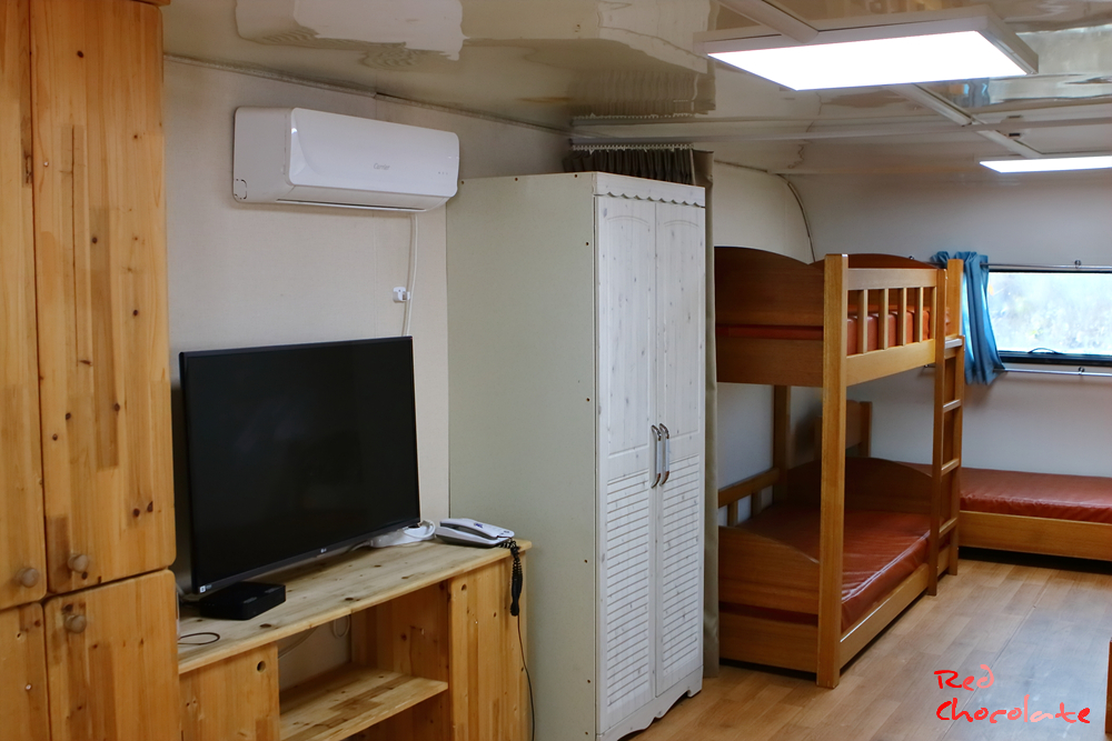 8인용 카라반의 내부 모습은 들어가서 우측이 침실 겸 거실이다.