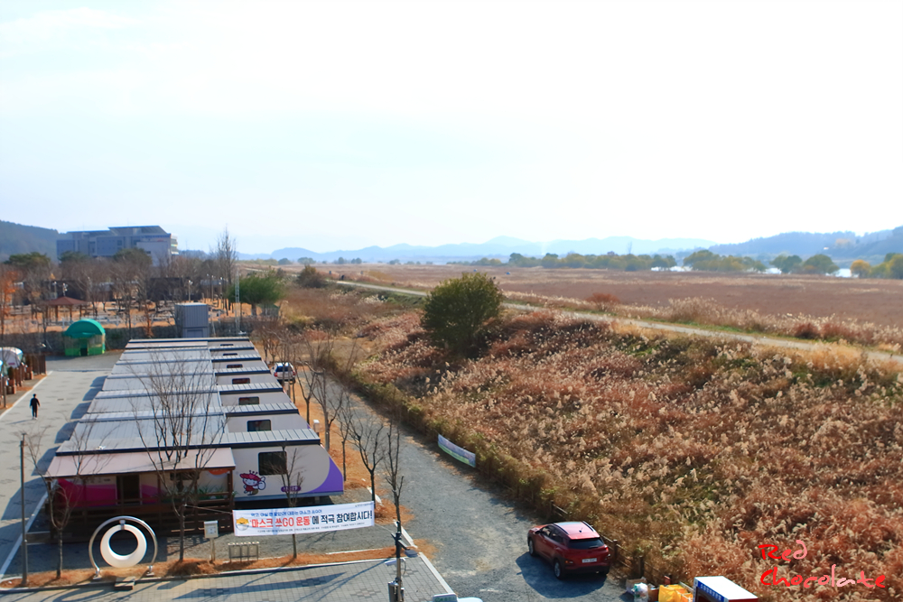 카라반들이 1자로 줄지어 있어 더 가까운 쪽 주차장을 이용하면 된다.
