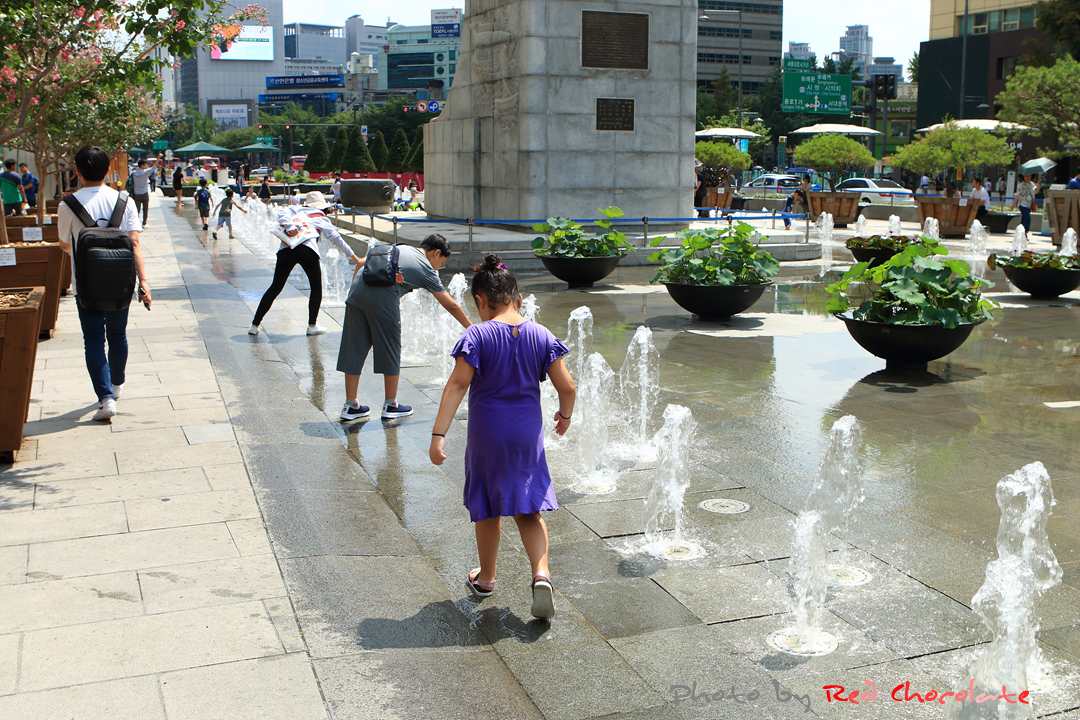 더운 날 아이들의 분수 놀이.... ㅎㅎㅎ 아이들을 데리고 온 부모님들까지.... ㅎㅎㅎ