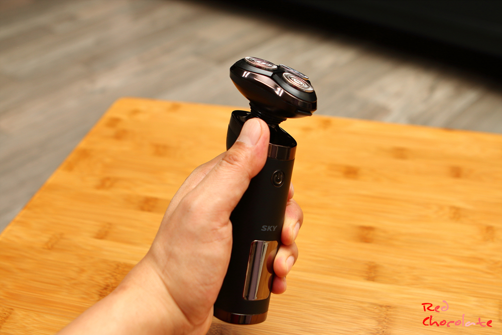 스카이 케어 SV100 전기면도기 본체는 한 손에 쏙 들어와 면도하는데 전혀 불편함이 없다.