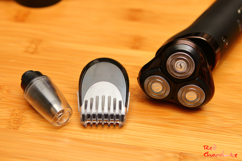 그동안의 전기면도기라 함은 면도하기 위한 전동면도기로 측면이나 후면에 구레나룻 정리용 트리머가 장착된 것이 일반적이었다. 하지만 스카이 케어 SV100 전기면도기는 면도 전용 트리머와 구레나룻, 콧털정리기까지 모두 동일하게 교환하며 사용할 수 있는 다기능 전기면도기라 할 수 있다.