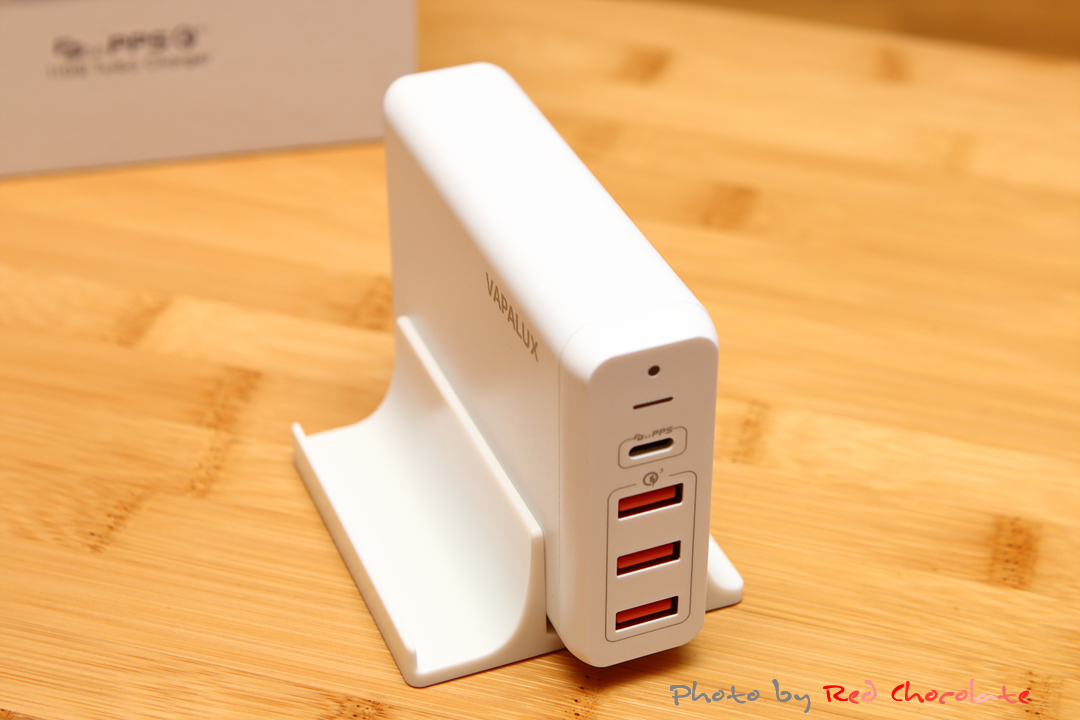 가장 필수적인 충전기의 과열로 인한 고장과 사고 방지이다... 충전기는 고출력을 지원하는 만큼 발열이 어느 정도 있는데 가장 넓은 옆면을 개방함으로 냉각이 쉽도록 세워주는 것이 가장 좋다... 그 역할을 이 전용 스탠드가 담당한다...