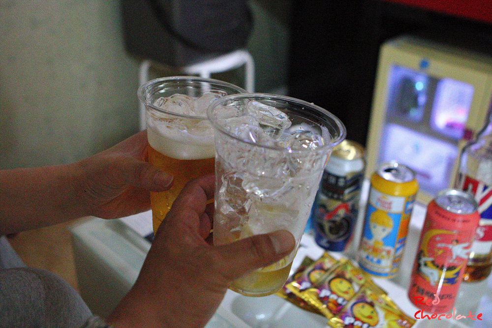 편의점 들려 얼음컵 사서 준비해 온 하이볼로 마무리하려 테이블 옮기고 준비하는데~~~