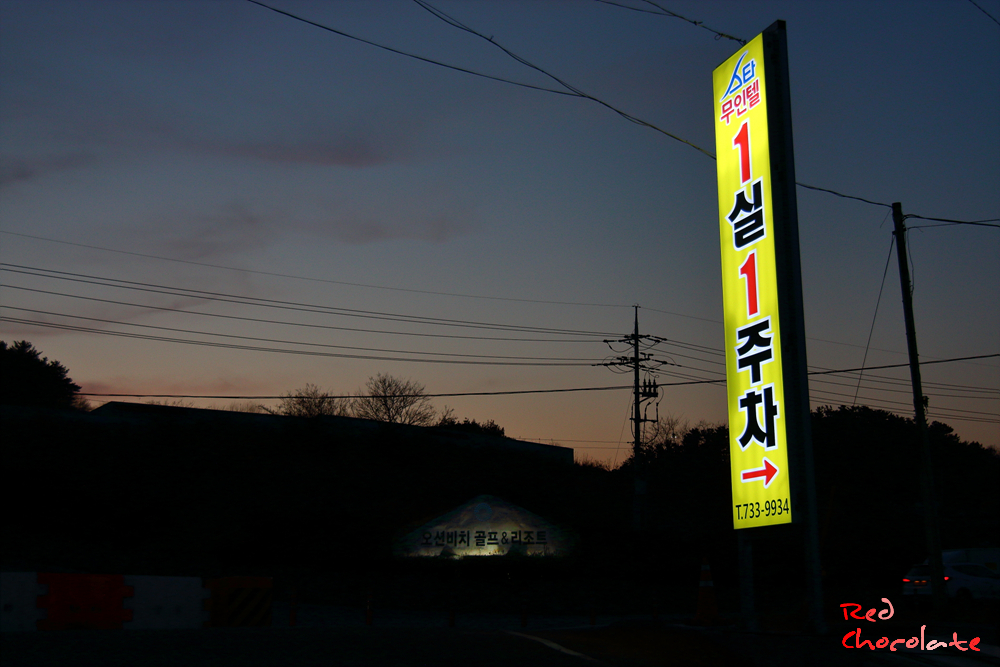 그것도 1실 1주차 무인모텔. 이번 주 역시 우리 아이들은 집 밖으로 나오지 않는다길래 부부 단둘이 떠나는 멋진 바다여행이 된다.