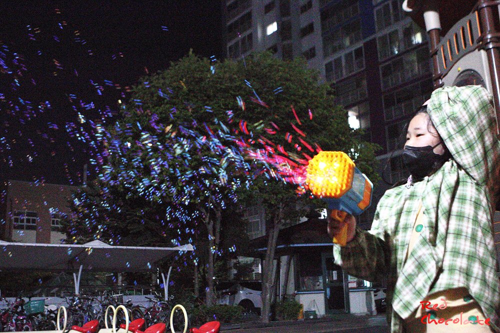 어릴 때나 좋아할 법한 비눗방울총을 이리도 좋아할 수가.