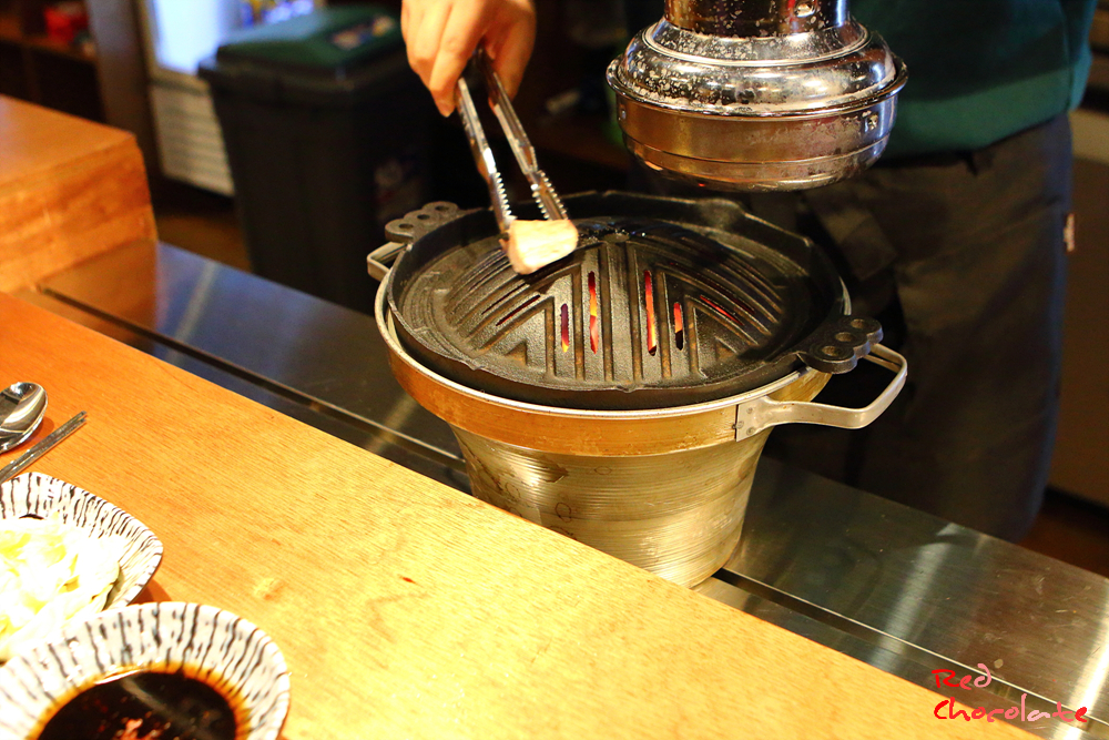 앉아 있는 바 앞에 화로를 가져와 직접 구워주는 곳이다.