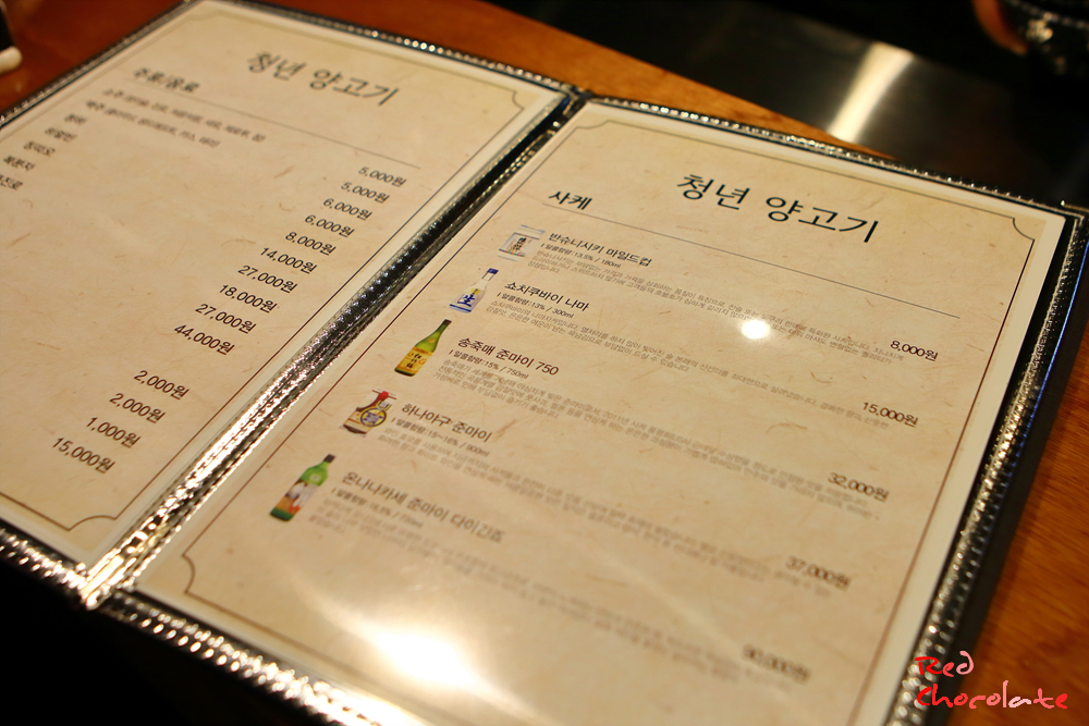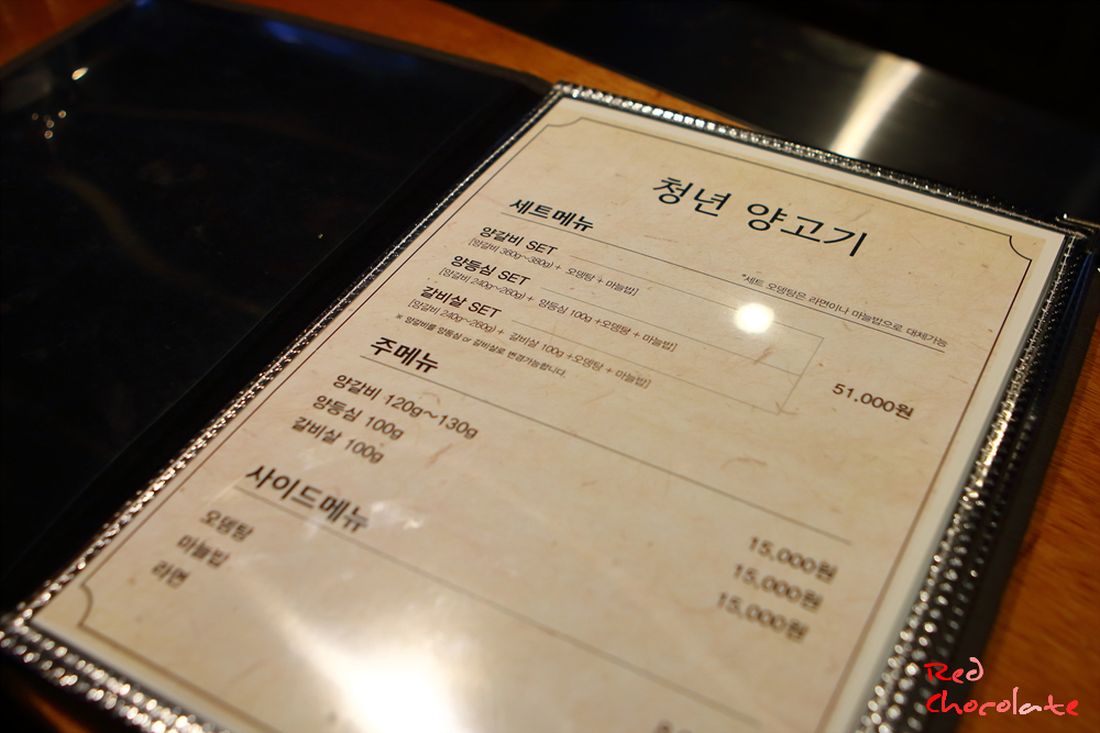 메뉴는 양고기 전문점답게 양갈비, 양등심, 갈비살로 주메뉴가 한정되어 있다.