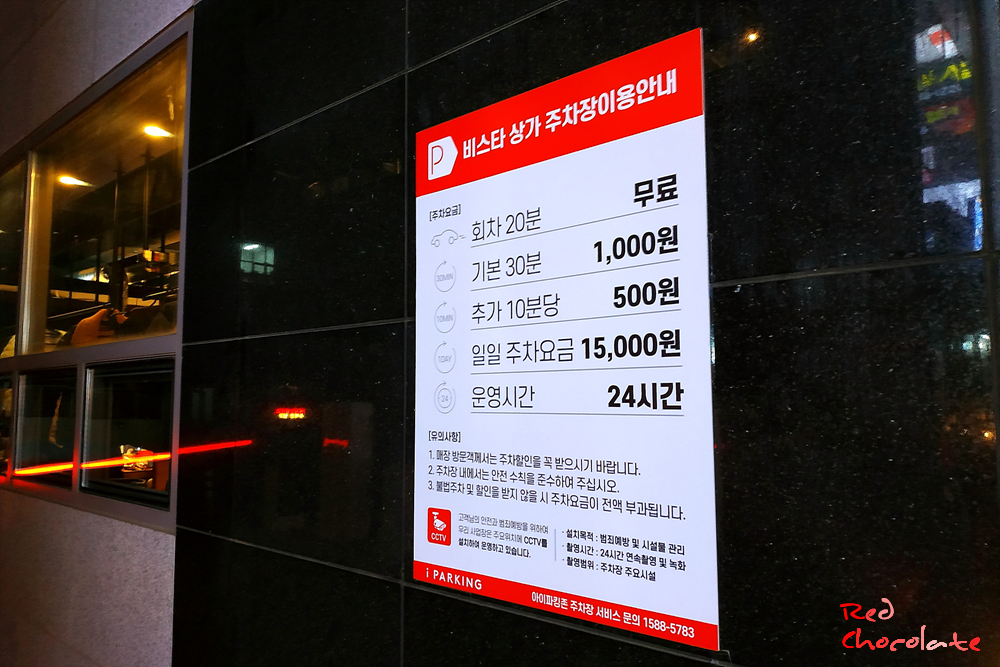 계산하고 나오기 전에 주차 등록하면 2시간 무료이니 꼭 주차했다고 말해야겠다.