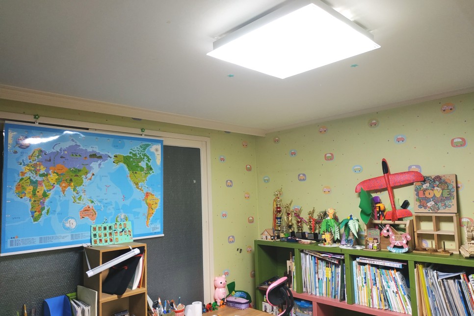 보통 실내 천정에 장착하는 LED 전구라서 혹시나 너무 밝아 아이들 눈에 안 좋을까 걱정을 했는데....