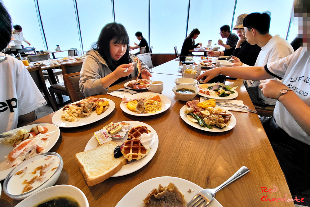 선크루즈 호텔 8층 레스토랑에서 조식을 먹을 수 있다.
