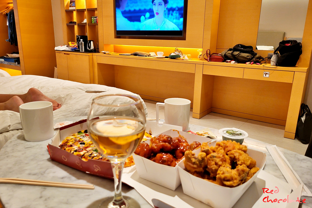 나름 퀄리티 좋다. 호텔 룸서비스 피자와 치킨은 여느 프랜차이즈 배달 음식과 크게 다르지 않았다.