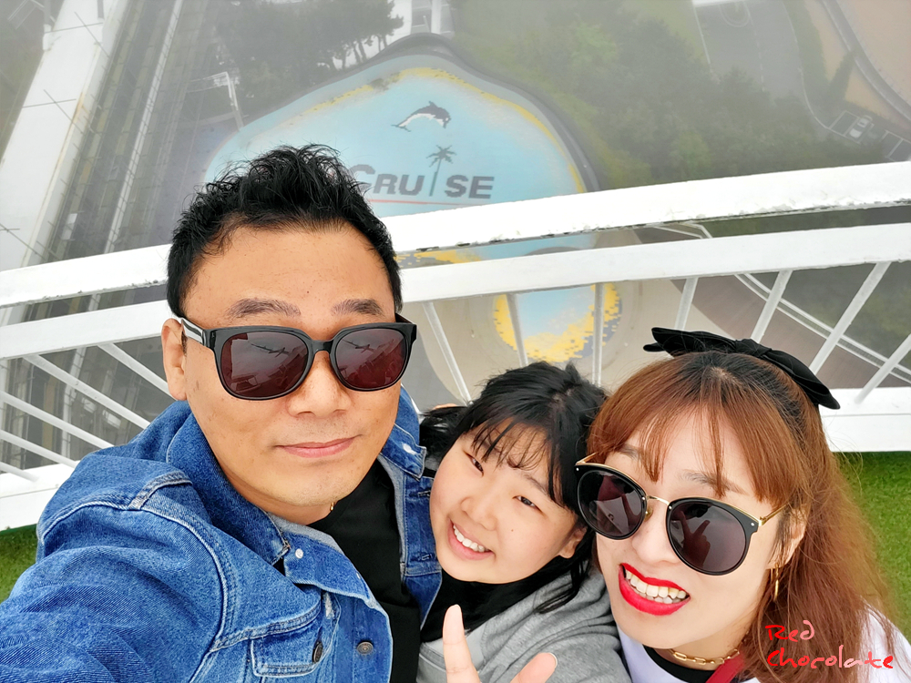 그나마 보이는 썬크루즈 인피니티 풀 배경으로 겨우겨우 가족사진을 남겨본다 ㅎㅎㅎ