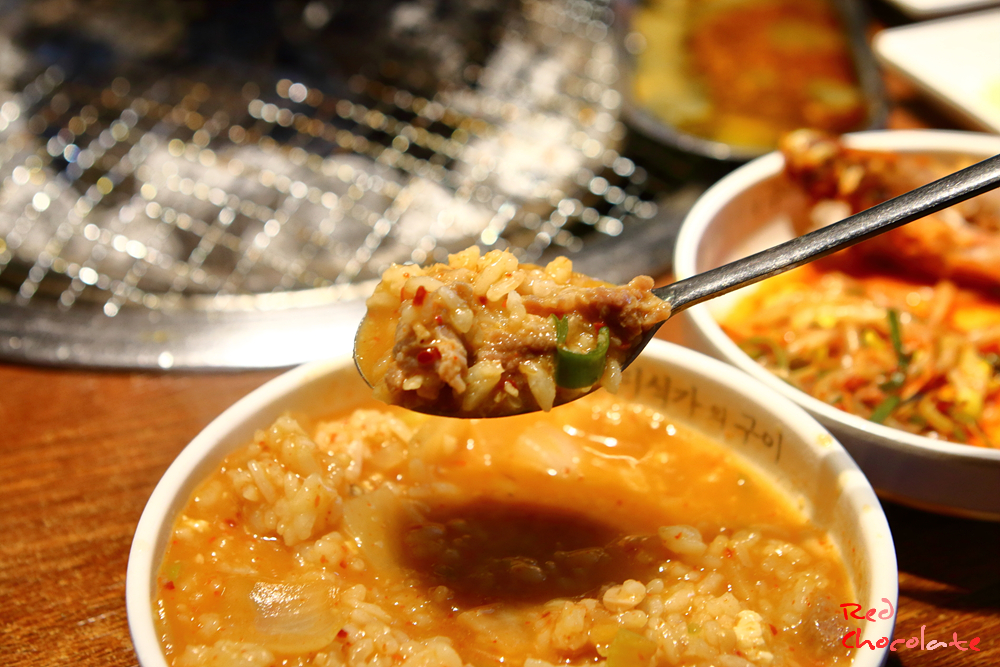 이와이면 고기 두 점 올려 먹는 걸 추천. 육즙이 정말 퐝퐝~~~ 터진다.