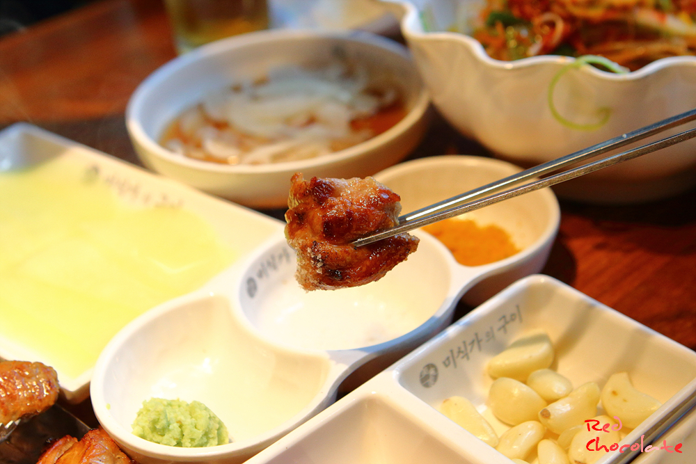 가장 먼저 소금에만 찍어 먹어보는 게 가장 이베리코 늑간살의 육즙을 맛볼 수 있는 방법일 것이다.