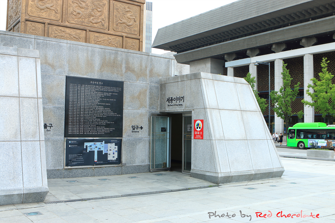 결국 땀 뻘뻘 흘리며 세종대왕 동상까지 왔는데~~~ 도저히 더위를 피할 길 없어 저기 보이는 지하 통로가 있길래 바로 저 문을 향해 돌진한다... 그늘이라곤 딱 여기 말고는 찾아볼 수가 없더구만...