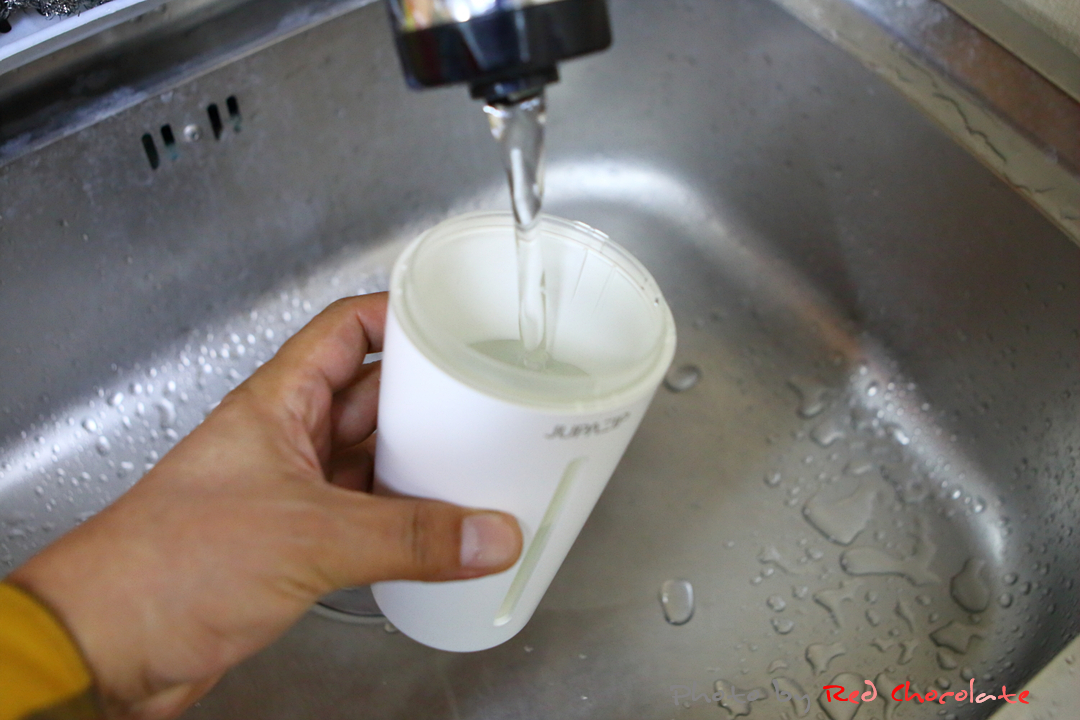 물통에 물 담기 전에 필터를 흠뻑 적셔준다...