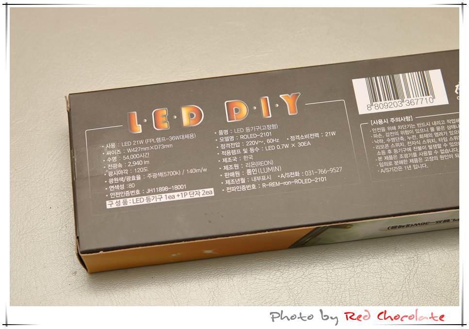 가정용 36W 대체용이라 밝기도 괜찮을 것 같고~~~ 동그란 LED 전구로 만들어 볼까 생각은 했는데 소켓도 사야 하고 연결할 것들이 많아질 듯하여 이 교체용 LED 등을 사용한다... 밝기 봐라... ㅎㅎㅎ 2940루멘 이라는... 유선이라 가능한 밝기겠지...^^