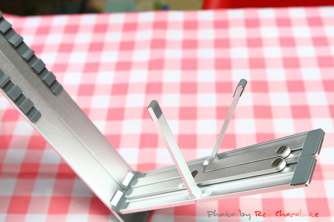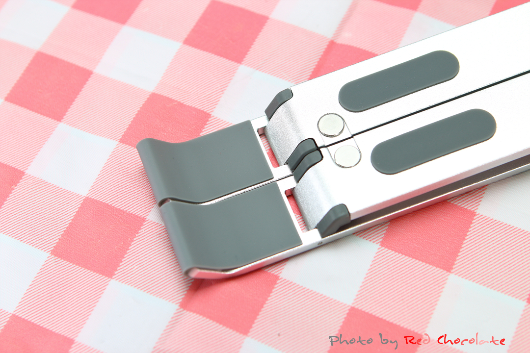 노트북 아래를 받쳐주는 지지대와 바닥면까지 꼼꼼하게 스크래치 방지용 실리콘 패드가 적용되어 있다..