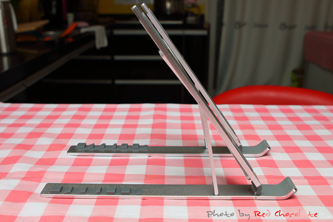이렇게까지 올린다면 최고 65도의 각도까지 올려줄 수 있으나 가벼운 태블릿은 괜찮을 수 있는데 무게가 있는 노트북이라면 살짝 안정성이 떨어질 듯하다... 노트북뿐만 아니라 태블릿까지 적용이 가능한 접이식 거치대이기 때문에 태블릿 사용 시 이렇게도 사용 가능하겠다... ^^
