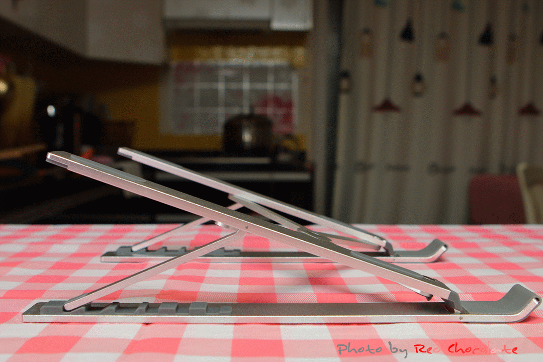 알루미늄 프레임으로 매우 튼튼하면서도 너비와 각도 조절이 가능한 접이식 노트북 거치대가 된다...
