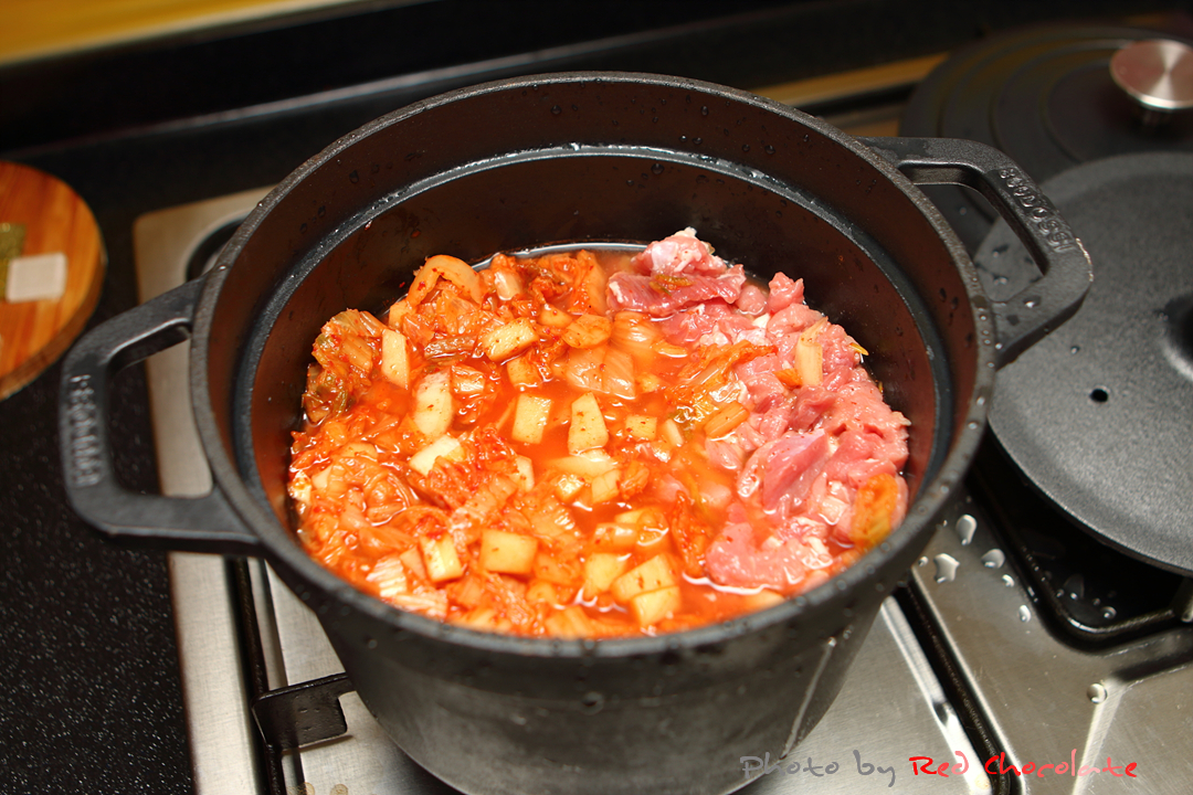김치와 돼지고기를 넣고
