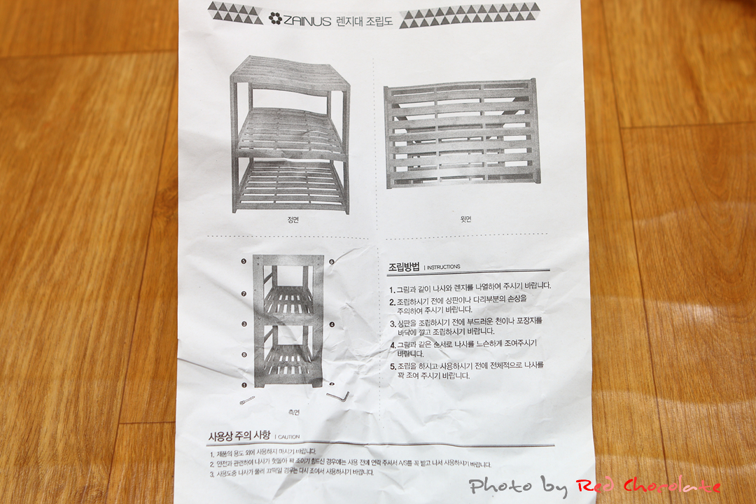 가장 아래쪽 선반부터 차례로 조립하고 다리 연결목 연결을 마지막으로 꽉~ 조여주면 된다... ^^