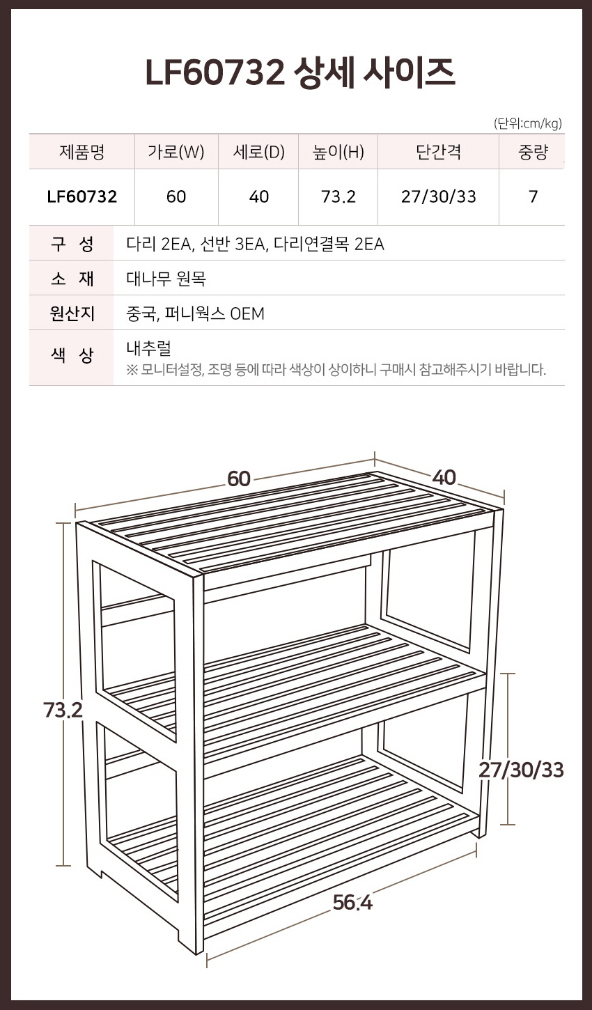 자이너스 원목 렌지대는 가로 너비 사이즈가 60cm와 75cm 두 가지 사이즈 모델이 있다...