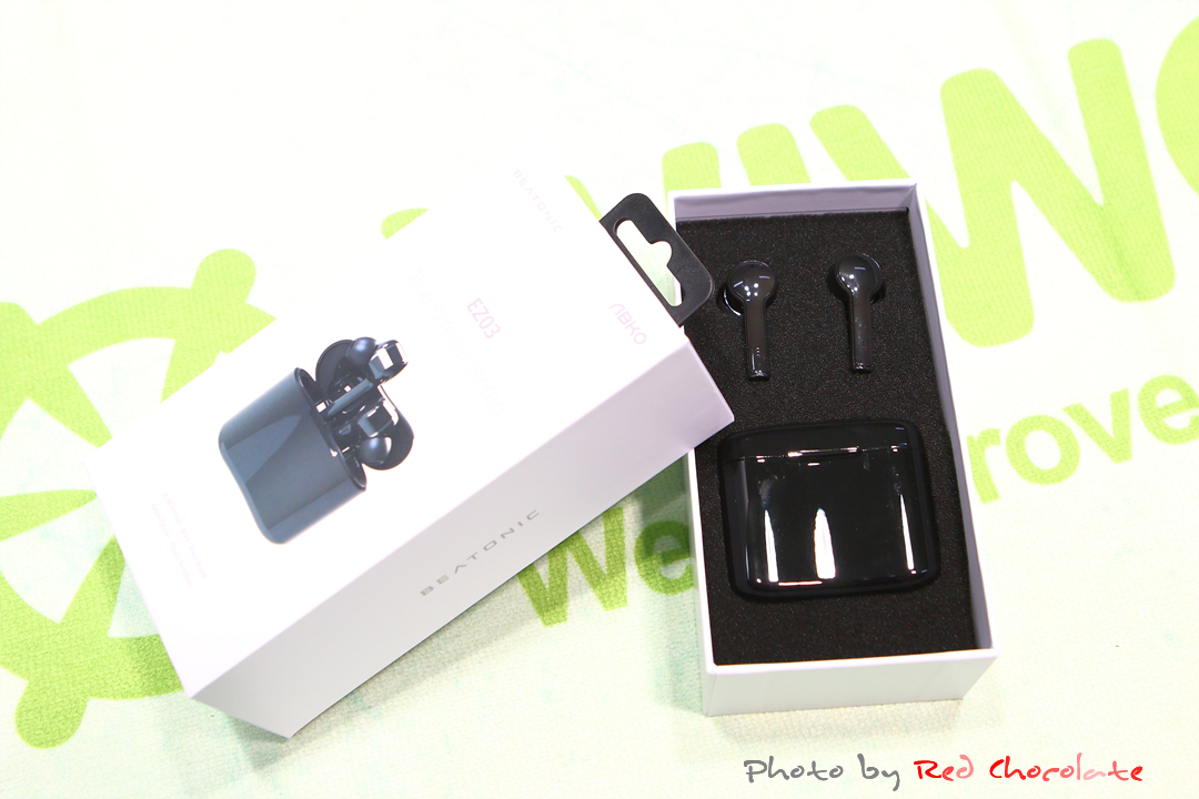 구성품으로는 비토닉 EZ03 양측 이어버드, 크래들, 사용 설명서, 충전 케이블, 이어팁
