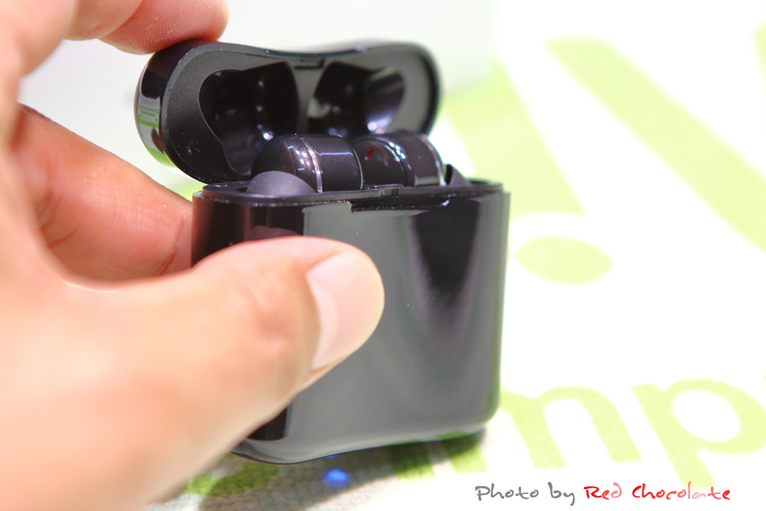 이어버드 표시등에 빨간등이 켜진다... 충전이 완료되면 표시등은 소등된다...