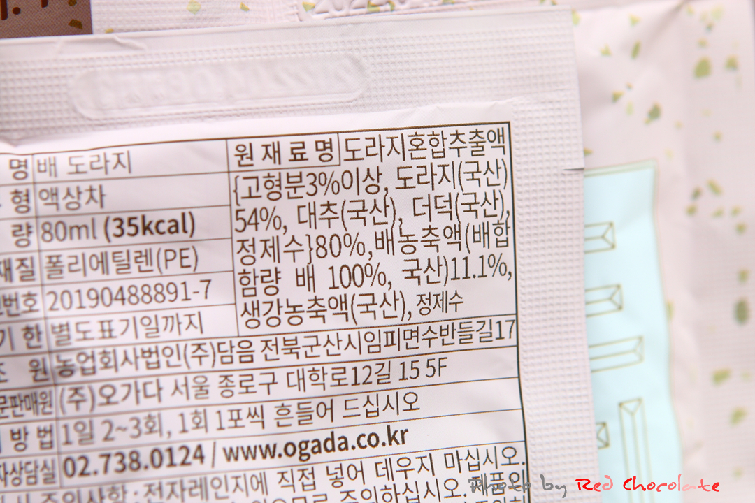 국내산 배, 도라지, 대추, 더덕, 생강만으로 만든 오가다 배도라지