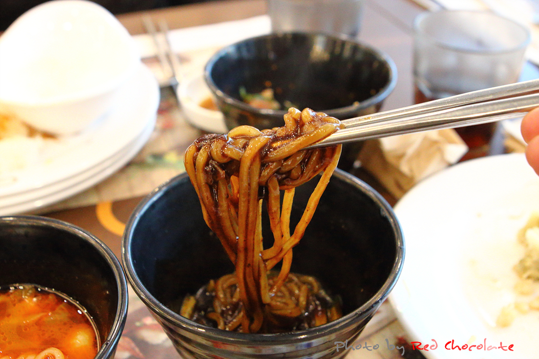 탱글함 지니고 있는 면에다 짜장 소스 듬뿍 짜장면...