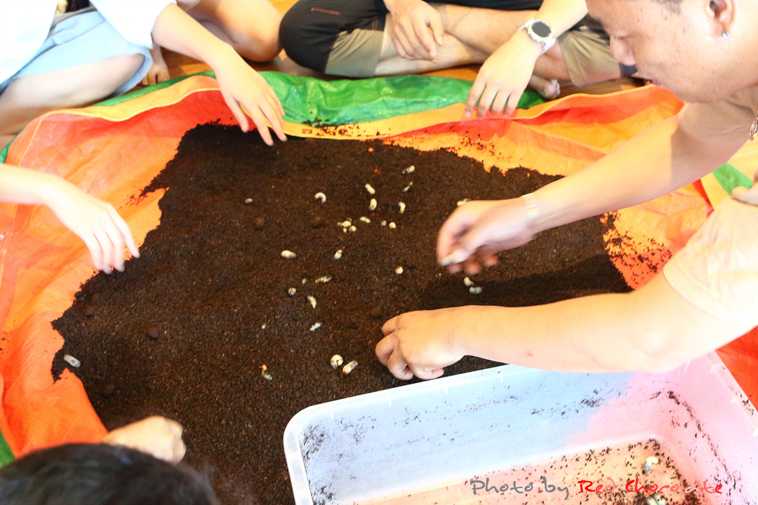 분변토 속으로 숨어버린 굼벵이를 끄집어 내서 어느 팀이 많이 담나 게임.... ㅎㅎㅎㅎ