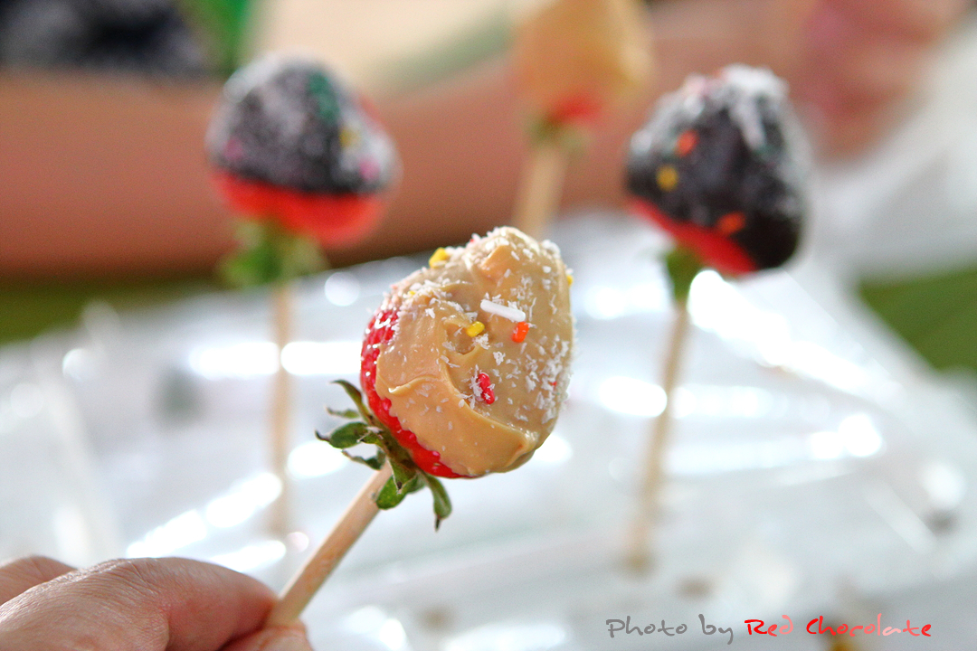 역시 첫 작품은 화이트 초코를 바른 딸기 퐁듀...