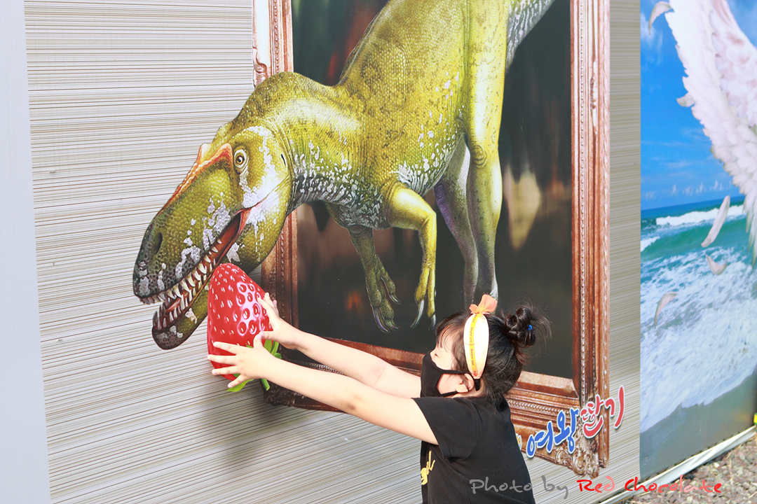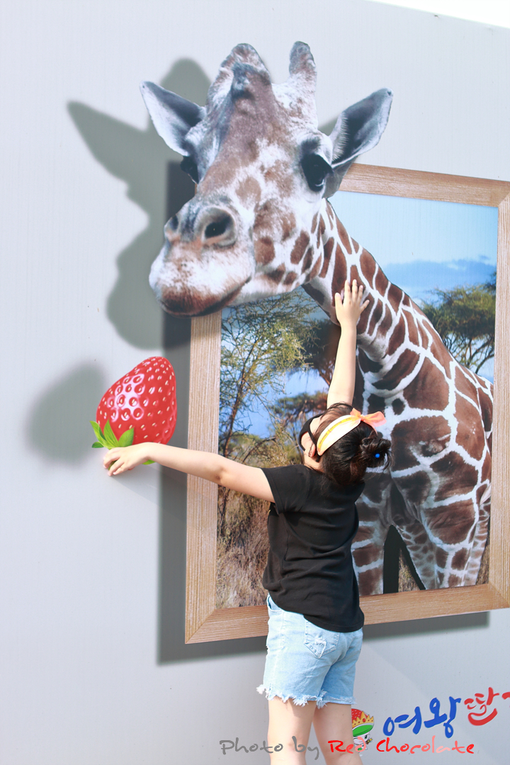 딸기 피자, 퐁듀 체험장 외벽에 이렇게 트릭아트 포토존이 있다...
