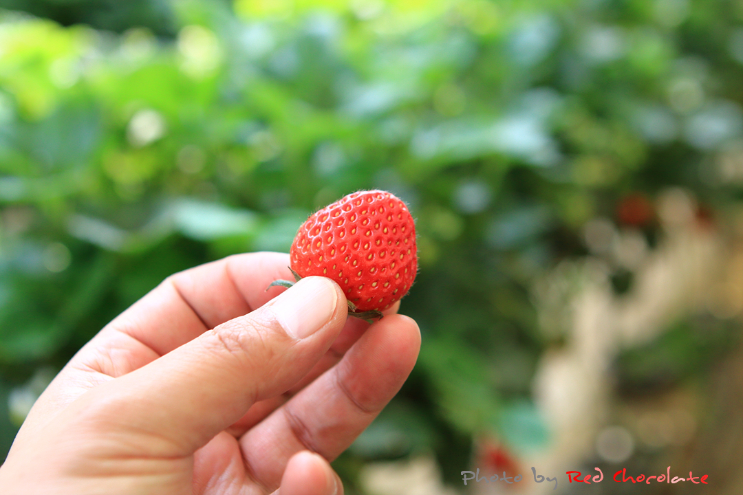 빨갛게 잘 익은 딸기 하나 따서 바로 먹어본다....
