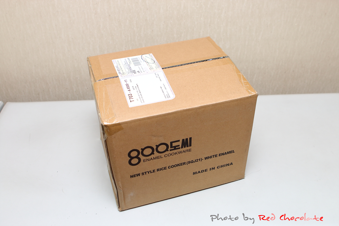 포장을 한꺼풀씩 벗길 때마다 드러나는 화이트 에나멜 라이스쿠커...