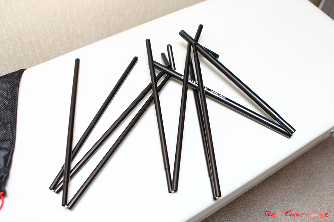 양측 다리는 아주 안정적인 각도로 삽입하고 상단 폴대를 마저 끼우면 완성...