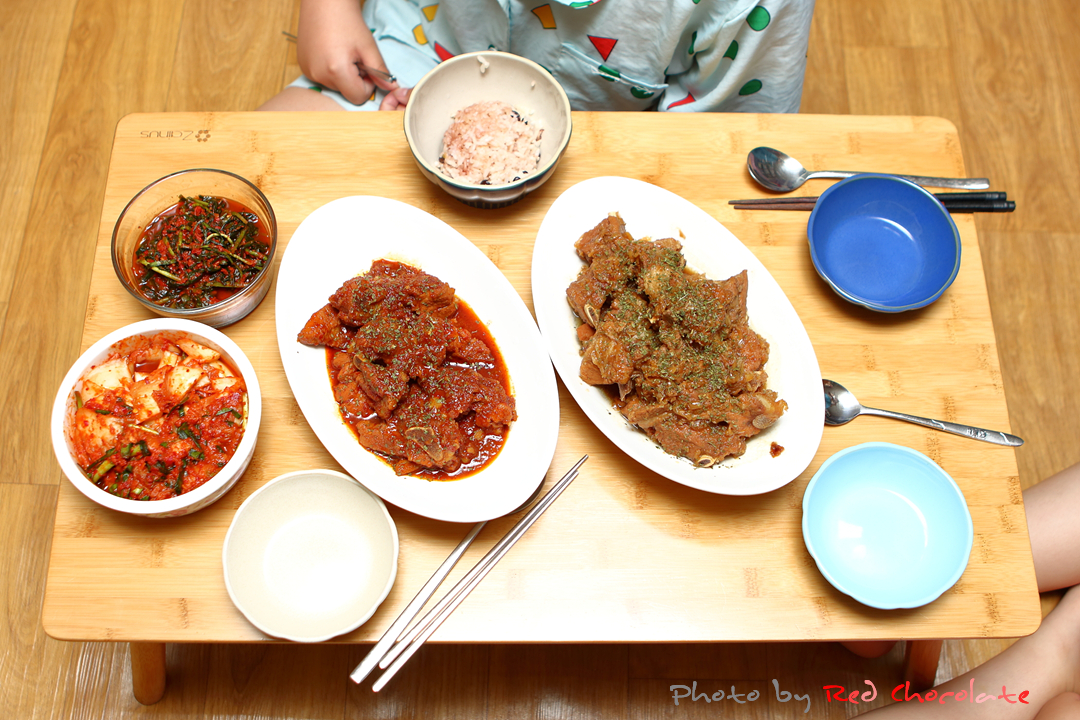 우리 부부가 먹을 빨~~~ 간 매콤한 갈비찜과 단짠단짠 아이들의 갈비찜... ^^