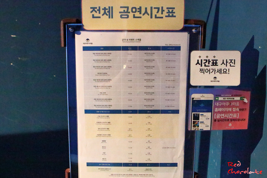 대구 아쿠아리움에 입장하기 전 꼭 확인해야 할 것은 바로 시간대별로 다른 공연들이다...