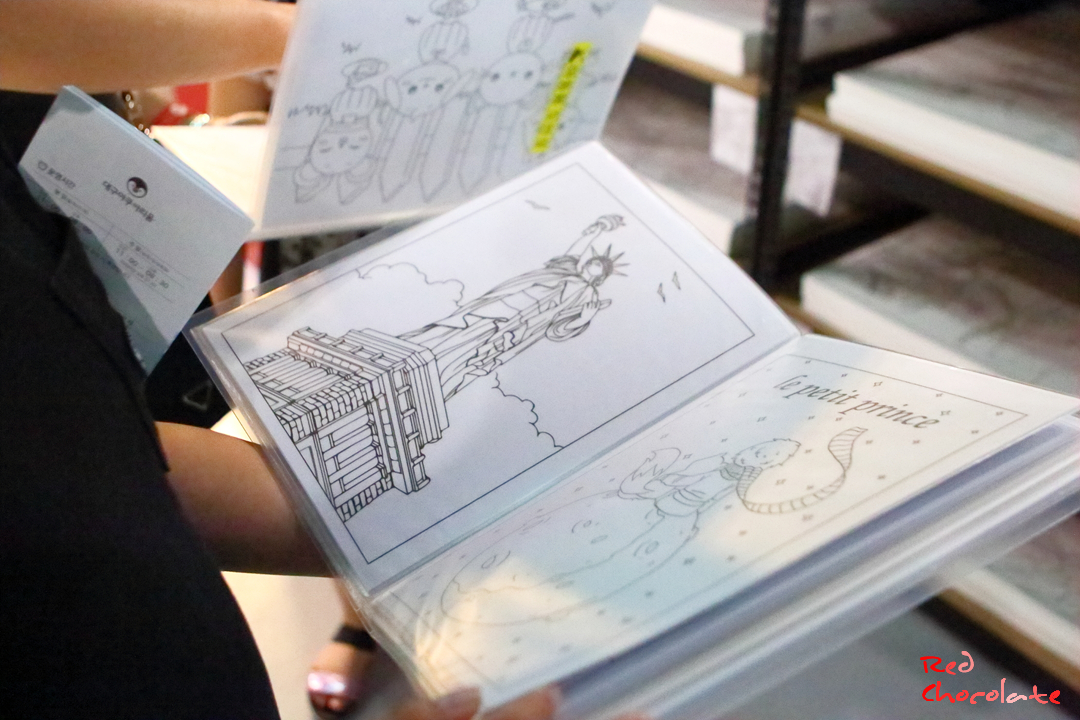 각자 원하는 스케치를 받아와 본인 취향으로 색칠하는 드로잉체험 공간이다....